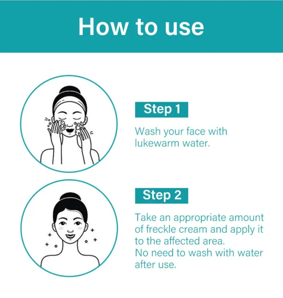Our Dar Spot Removal Cream is easy and straightforward to use and visible results can be seen within 2 weeks of consistent use. The steps below shows how to use it: