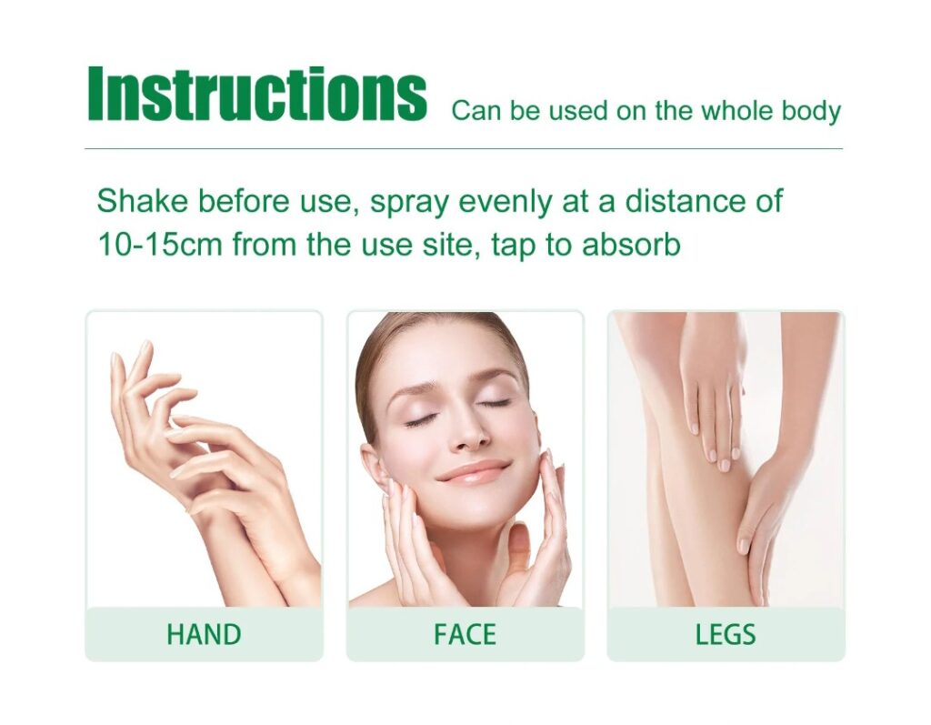 The spray effectively reduces skin irritation, induces relaxation, and improves skin clarity. By enhancing good-looking skin and providing soothing relief to sun-damaged skin, the spray repairs and restore damaged skin cells, promoting healthy, radiant skin.