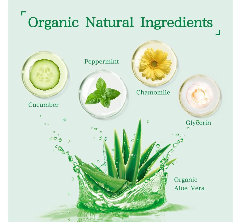 The Aloe Vera Sun Repair Cream is made of natural extracts such as cucumber, peppermint, chamomile, Glycerin, Organic Aloe Vera etc. which can help alleviate skin discomfort.